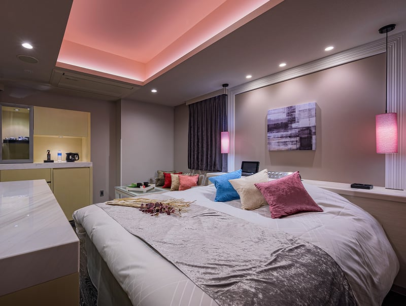 お部屋のインテリアはシックでおしゃれな装い。女性グループ4名様までお泊まりになれます。(※5名様以上はご相談ください) わいわい素敵な夜をお過ごしください。