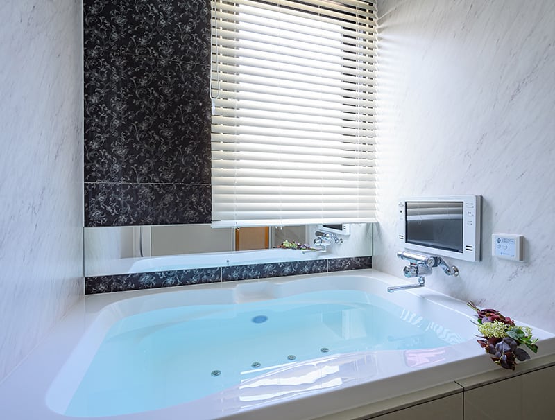 保湿・浸透効果にすぐれた魔法の水「ナノウォーター」を全館に導入。清潔感のある広めのお風呂はキレイ&癒しパワー全開です。